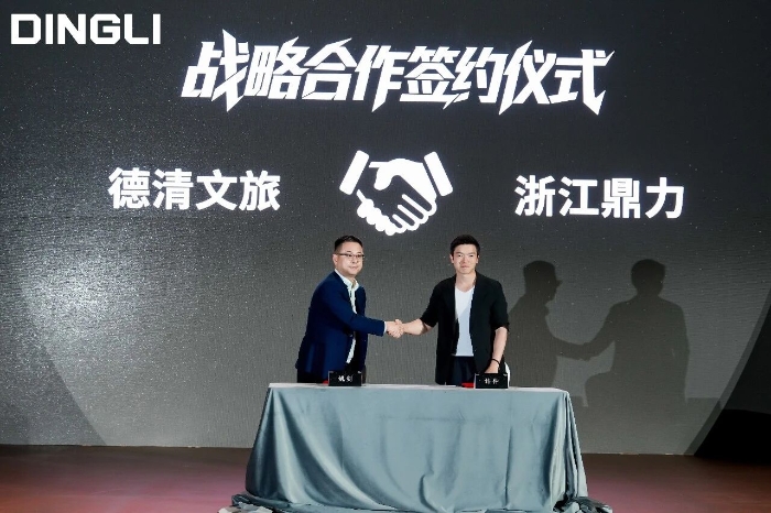 随后,德清县文化旅游发展集团有限公司总经理姚剑先生的登台致辞,让这场跨界的意义愈发清晰。在全场的见证下,浙江鼎力与德清县文化旅游发展集团的签约仪式顺利完成。这场携手,既是装备制造与文旅产业的跨界碰撞,更是 “技术复用 + 场景创新” 的生动实践,也为制造企业赋能文旅发展提供了借鉴范本。