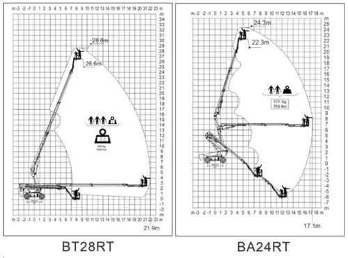新直臂式平台载重最大可达450kg,曲臂式最大可达320kg,较传统臂式同款车型(直臂式300kg,曲臂式230kg)负载能力更大。
